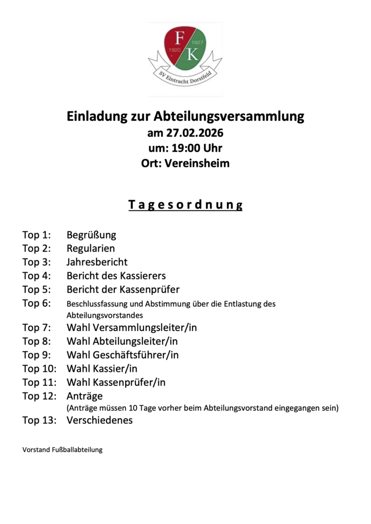 Abteilungsversammlung Fußballabteilung